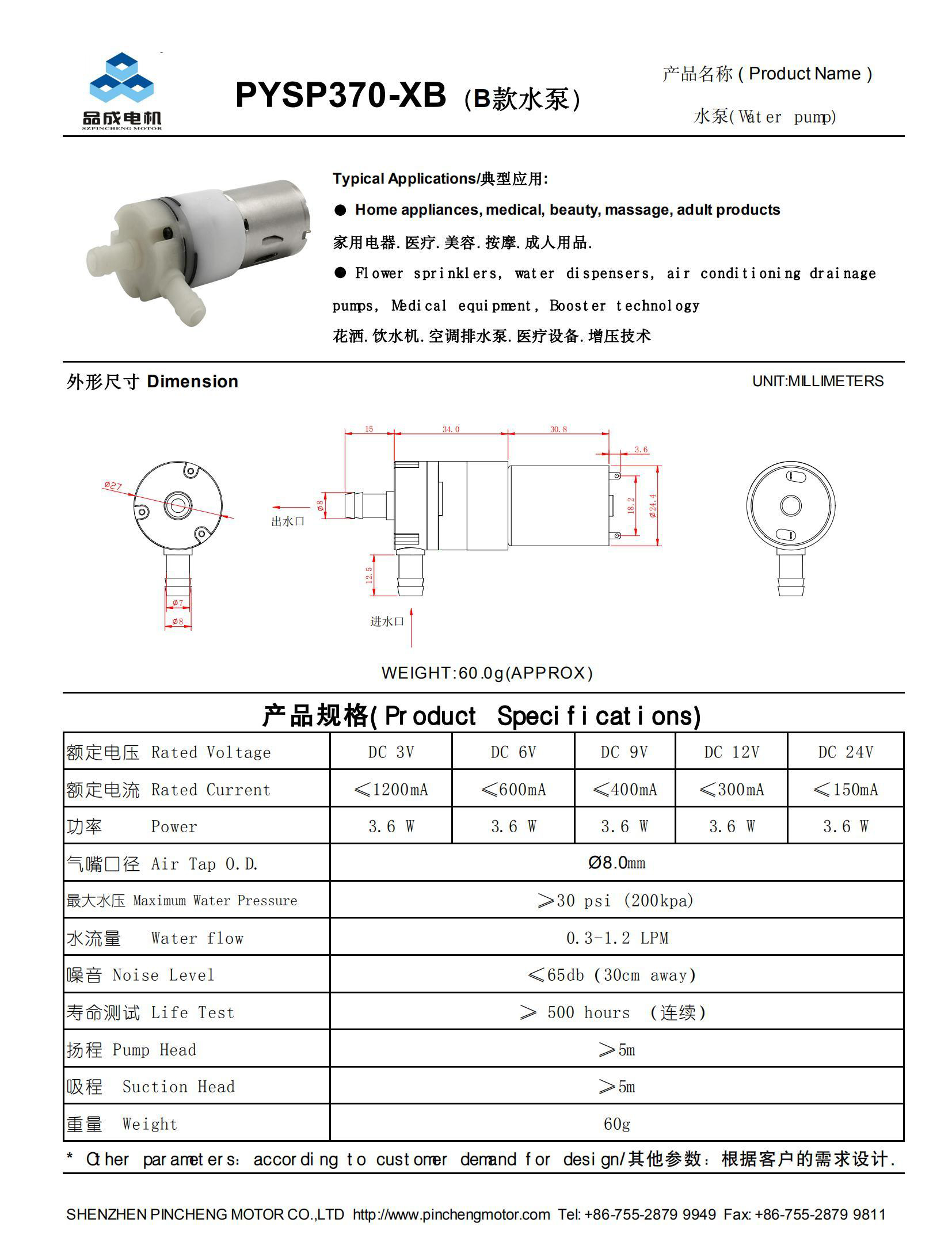 | 型號 | PYSP370-A直流水泵 | 材質 | 工程塑料 | 驅動方式 | 電動 |