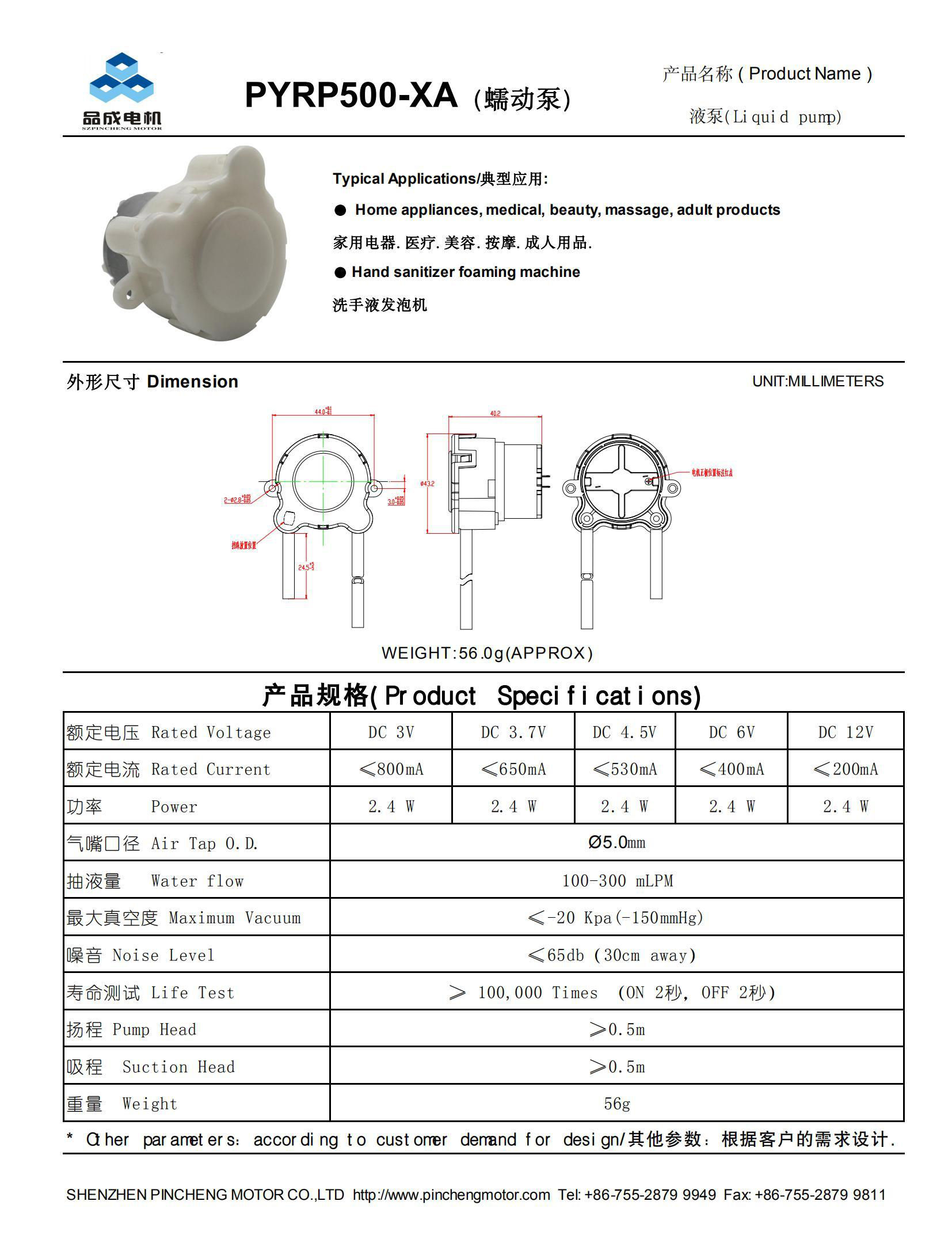 | 品牌 | 品成電機 | 型號 | PYP500微型蠕動泵 | 材質 | 工程塑料 |