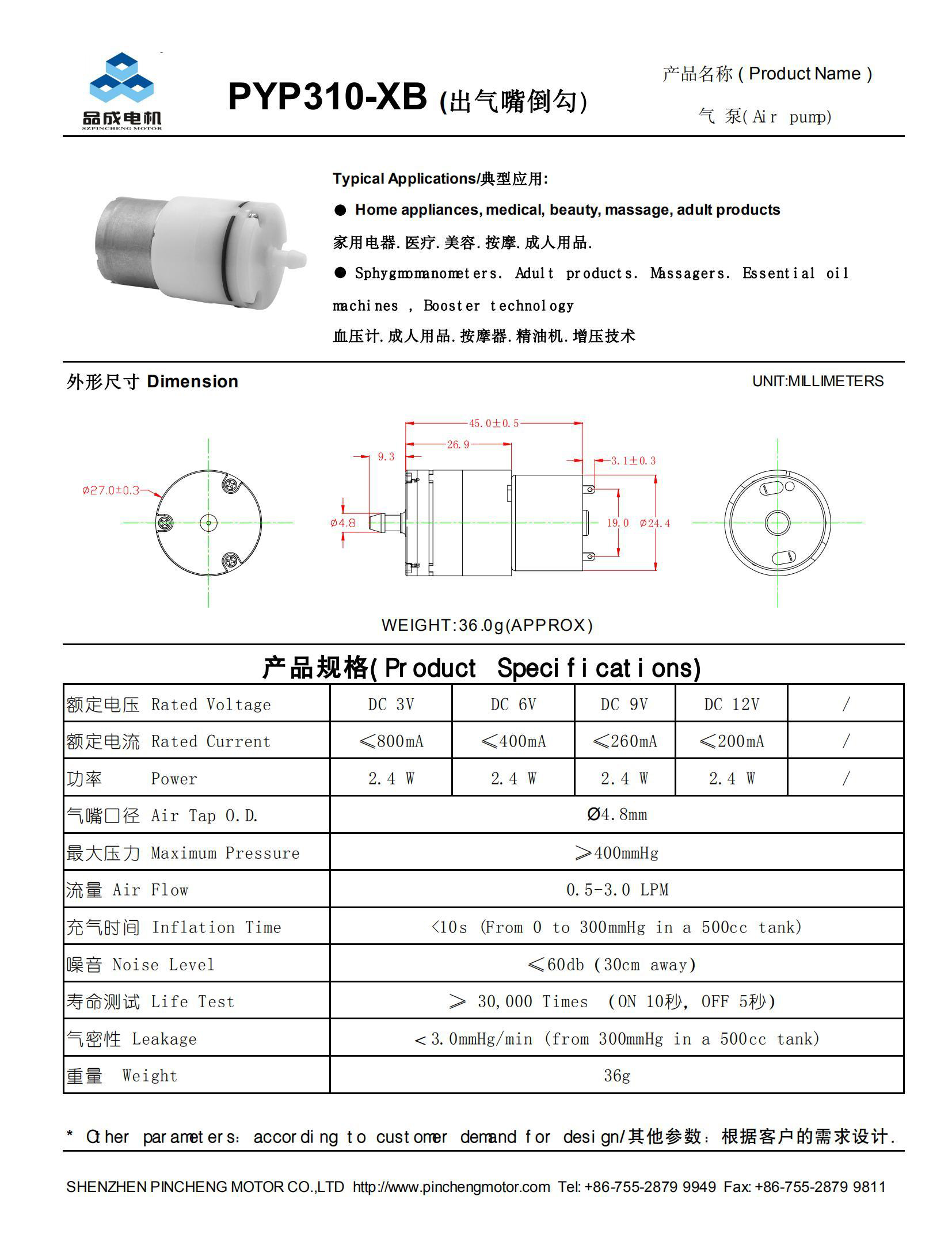 訂貨號 PYP310B 類型 氣體傳輸泵 貨號 PYP310氣泵