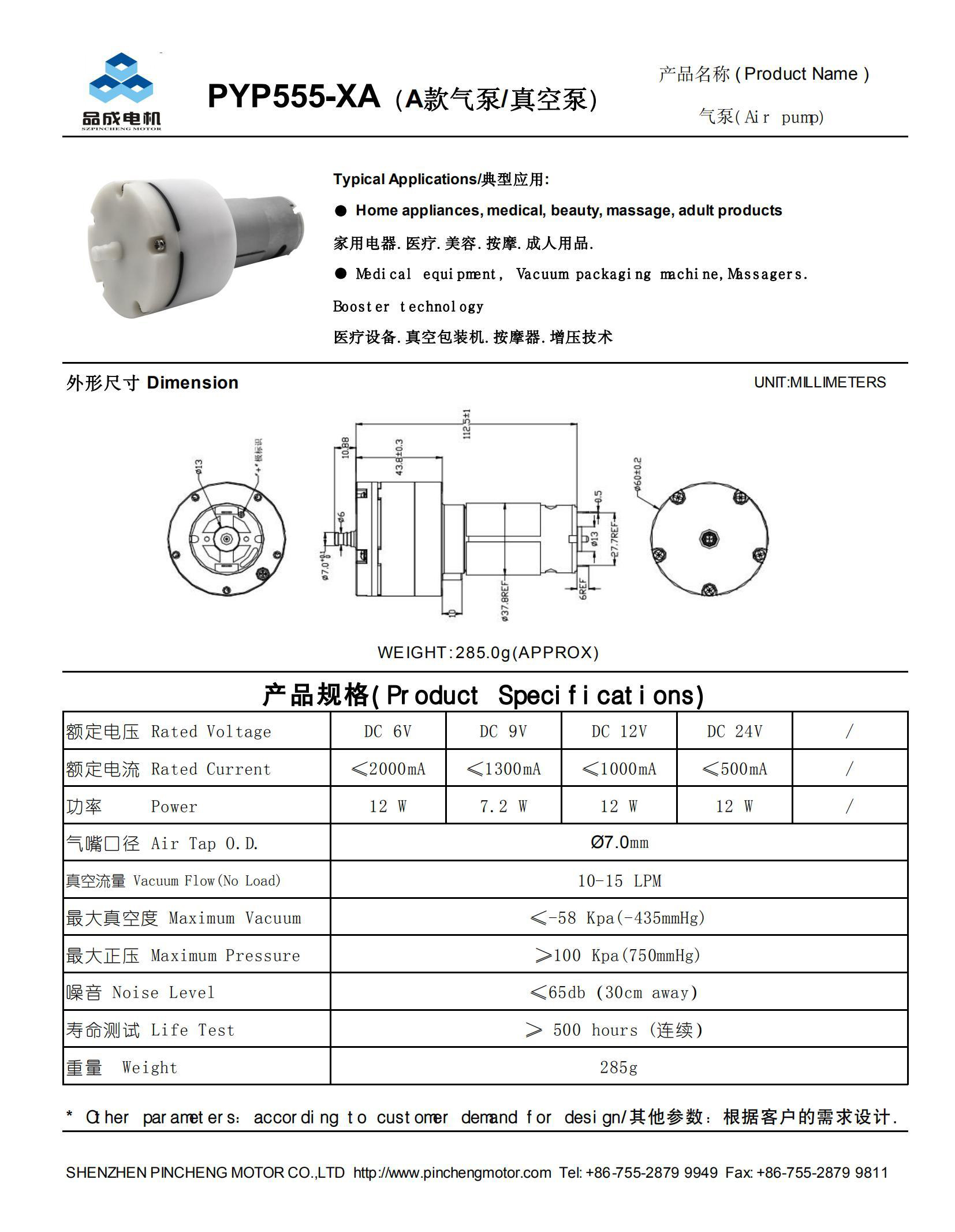 | 品牌 | 品成電機 | 型號 | PC555真空泵 | 材質(zhì) | 工程塑料 |